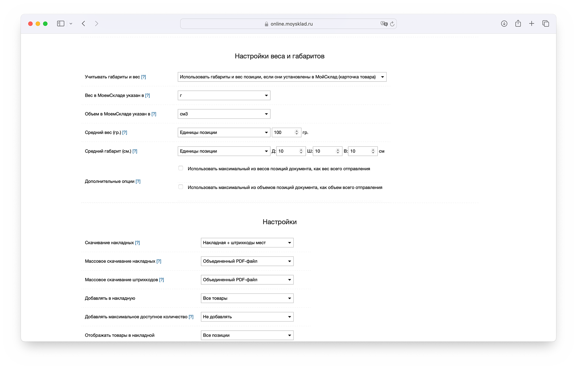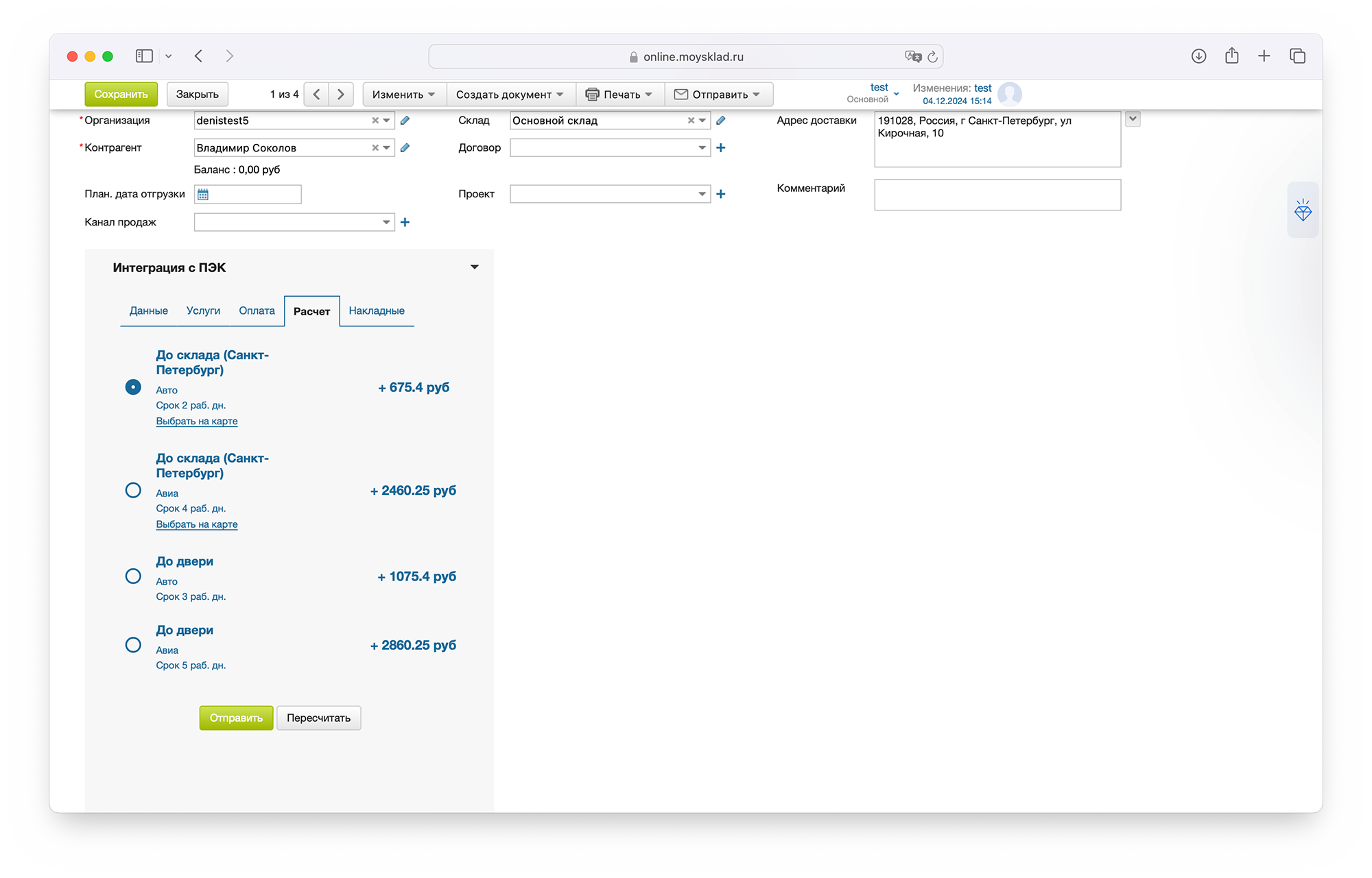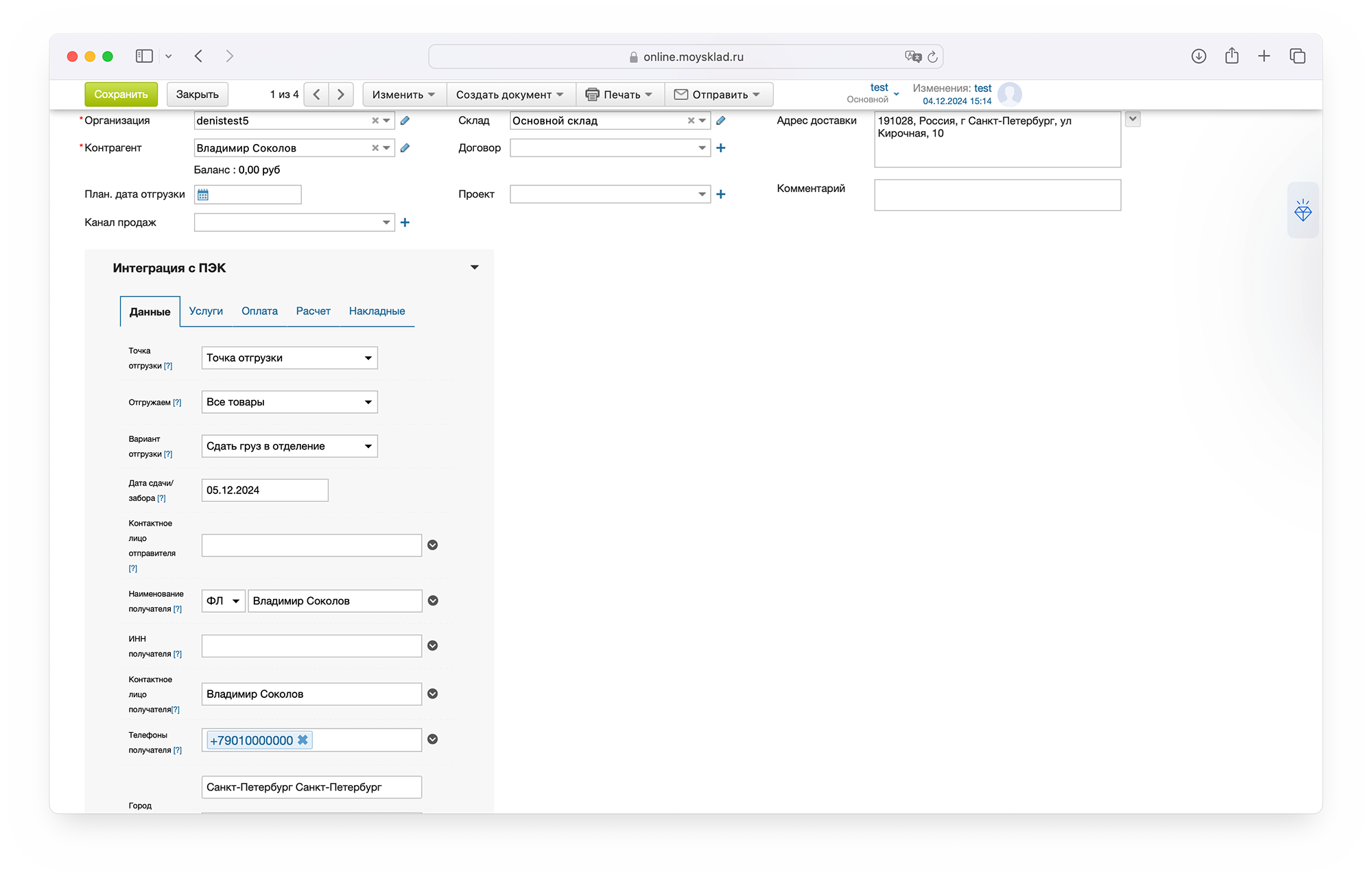 Позволяет быстро оформлять накладные ПЭК в МоемСкладе