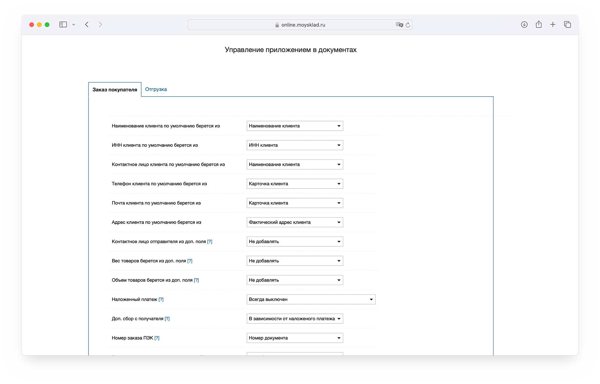 • автоматическое определение города доставки из адреса заказа или отгрузки