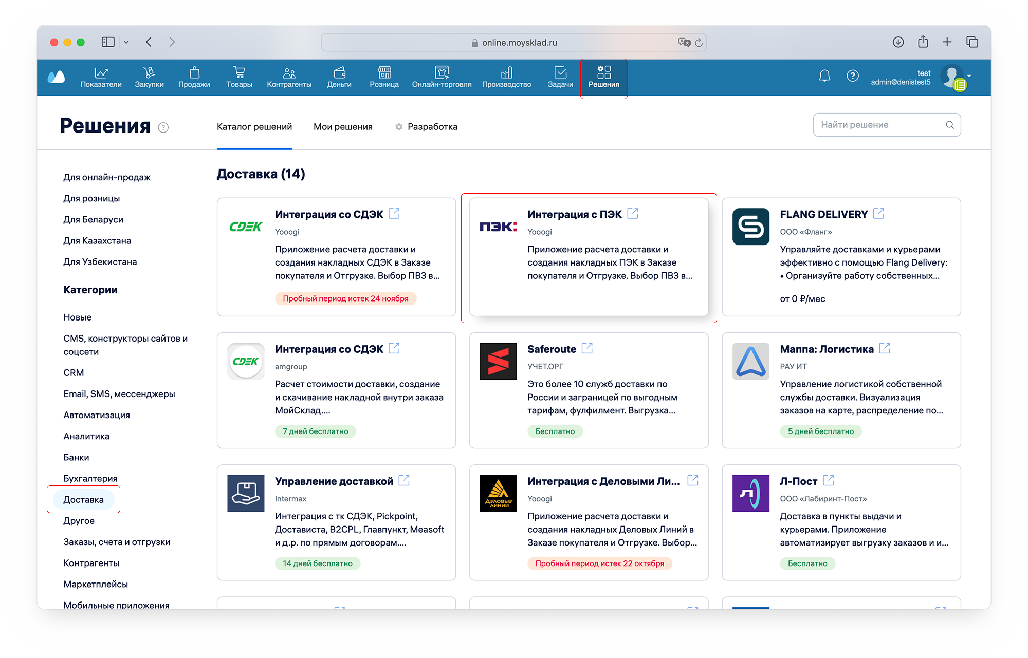 Перейдите на страницу решений, выберите подраздел "Доставка"