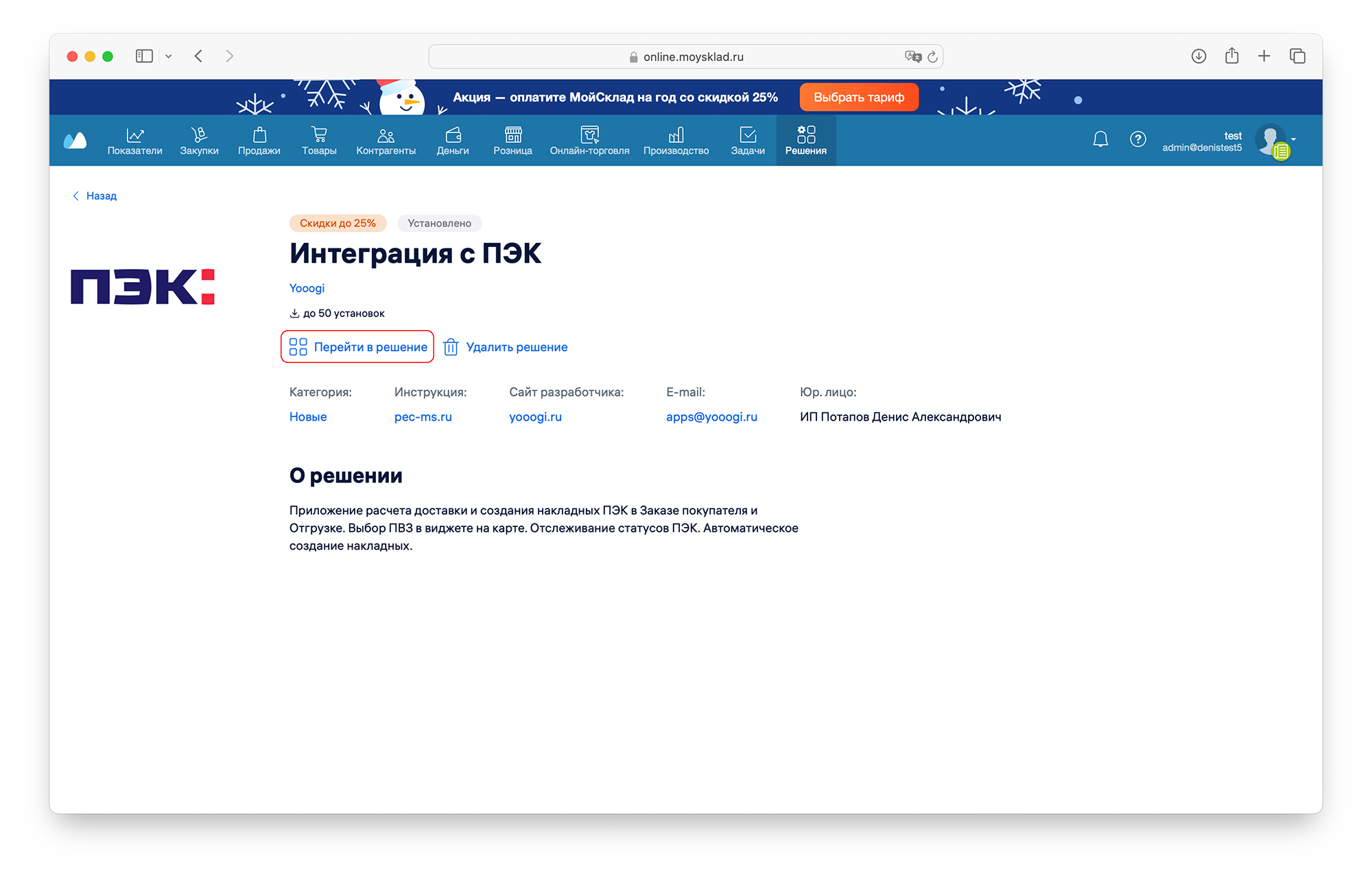 На открывшейся странице нажмите "Перейти в решение" и следуйте инструкции по настройкам интеграции